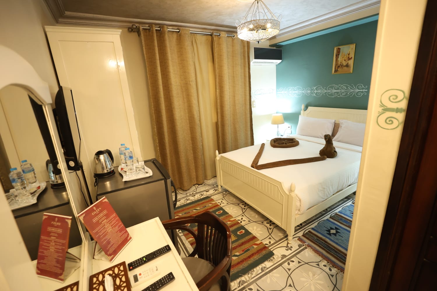 At Eileen Hotel Cairo, we invite you to experience comfort, convenience, and authentic Egyptian hospitality in the heart of the capital. Our family-friendly hotel features modern, air-conditioned rooms with pillowtop beds, private bathrooms, Smart TVs, minibars, and soundproofing to ensure a relaxing stay, complemented by complimentary high-speed Wi-Fi. Guests can enjoy a rich daily buffet breakfast with local specialities, dine at our restaurant or café, or unwind on the terrace and outdoor seating areas. Additional leisure amenities include a hot tub, lounge and a welcoming reception hall.